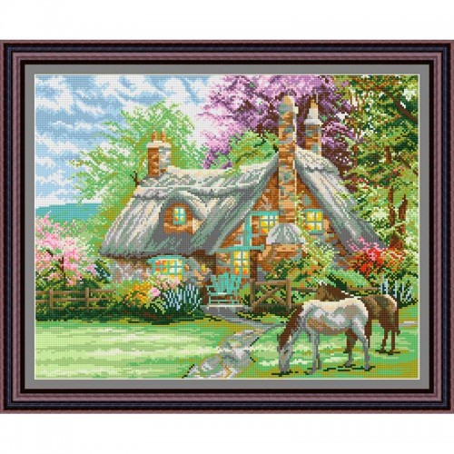 Рисунок - схема на ткани - "Весна в деревне"