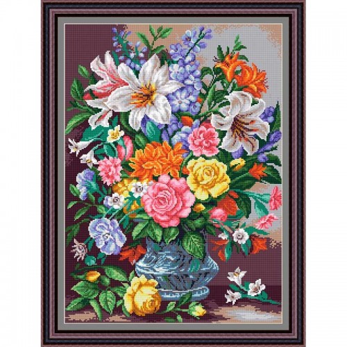 Рисунок - схема на ткани - "Летний букет в хрустальной вазе"