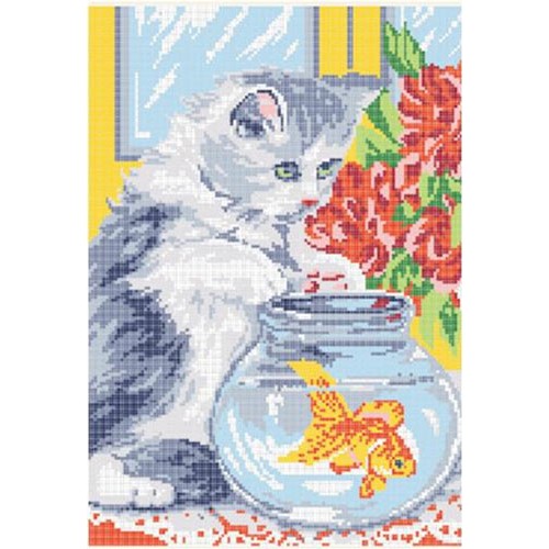 БП-Ж-057с Схема для вышивания бисером "Котёнок с рыбкой"